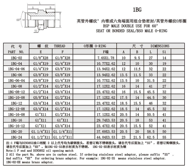 1BG-02,1BG-04,1BG-06,1BG-08,1BG-12,1BG-16,1BG-20,1BG-24,錐面密封接頭