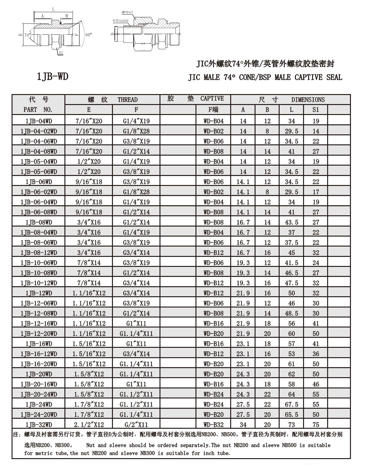 1JB-04WD,1JB-06WD,1JB-08WD,1JB-12WD,1JB-16WD,1JB-20WD,1JB-24WD,1JB-32WD,美制螺紋74°錐面接頭