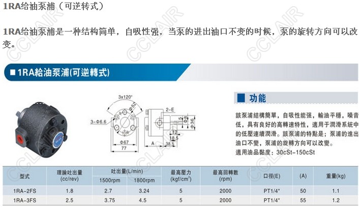 1RA-2FS,1RA-3FS,給油泵浦(可逆轉式)