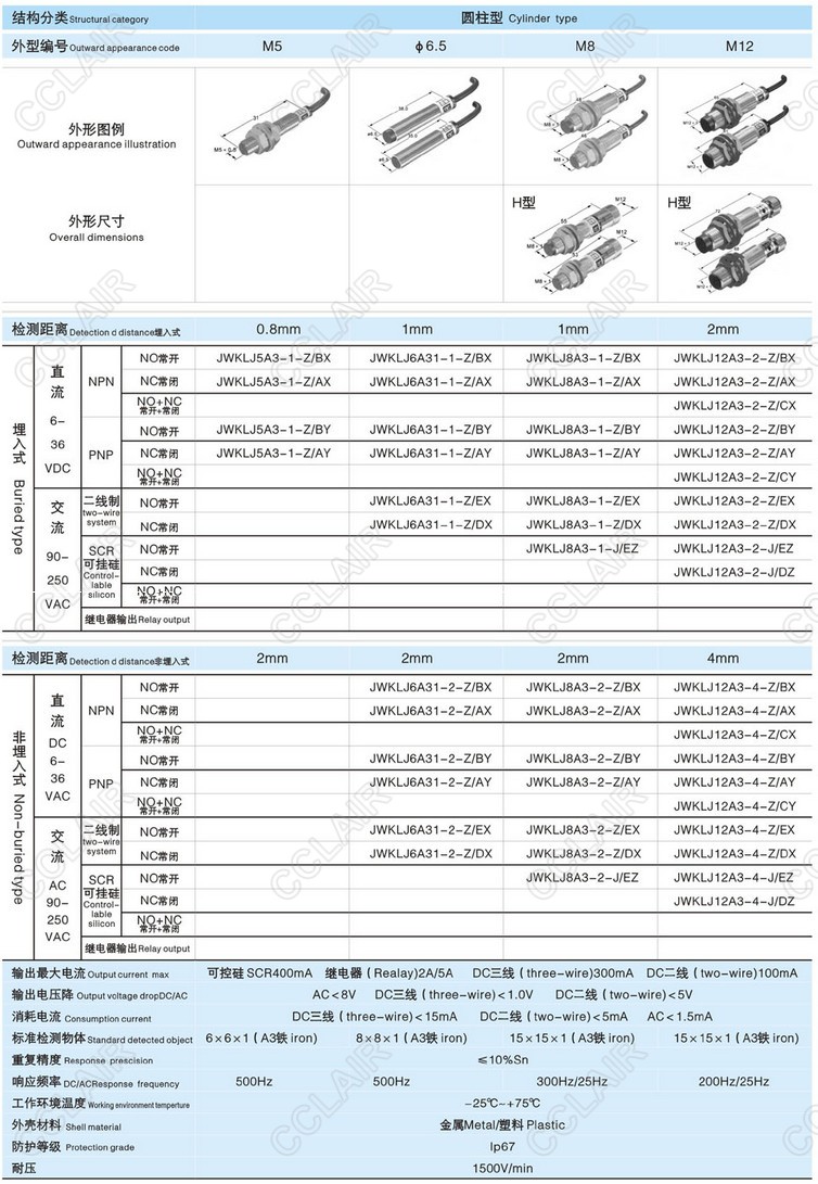 JWKLJ5A3-1-Z/BX,JWKLJ6A31-2-Z/BX,JWKLJ12A3-4-Z/AX,JWKLJ12A3-4-J/DZ,接近開關(guān)