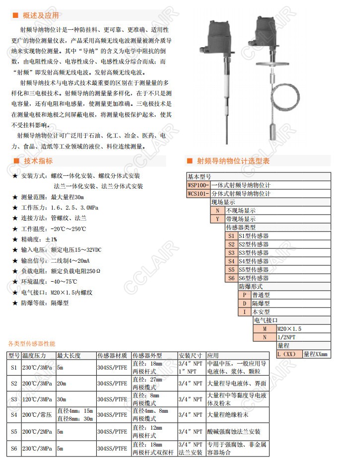 WSP100-NS1PM,WSP100-NS3PM,WCS101-NS2DN,WCS101-YS6IN,射頻導(dǎo)納物位計(jì)