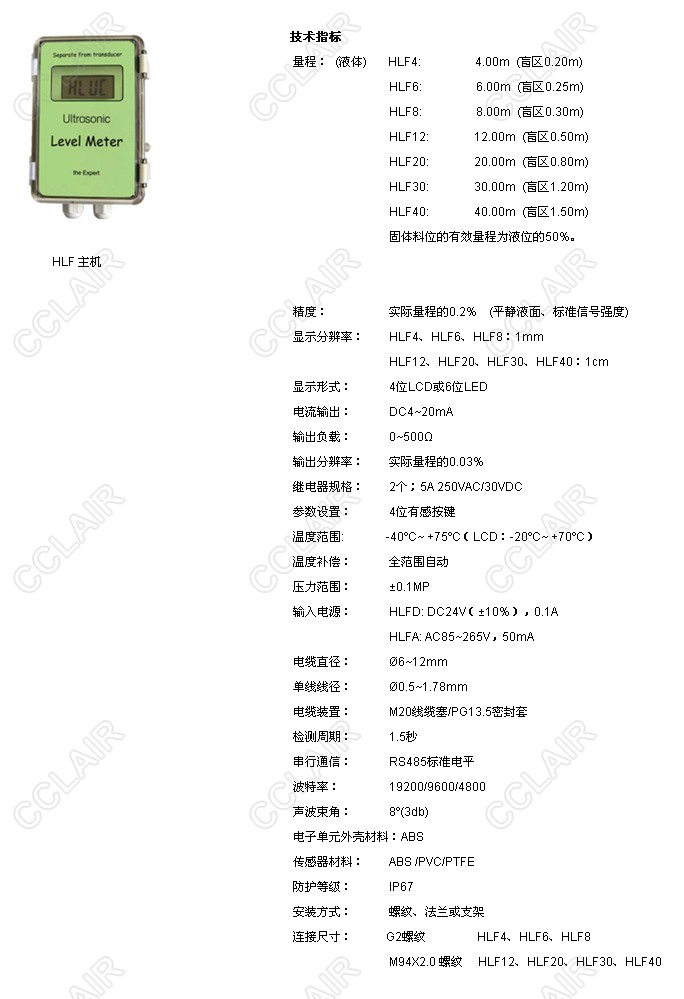 HLF4,HLF6,HLF8,HLF12,HLF20,HLF30,HLF40,HLF分體式超聲波物位計