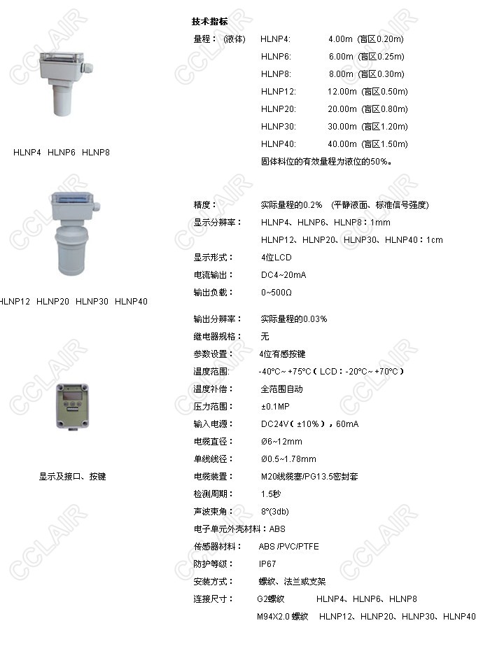 HLNP4,HLNP6,HLNP8,HLNP12,HLNP20,HLNP30,HLNP40,HLNP一體式超聲波物位計(jì)