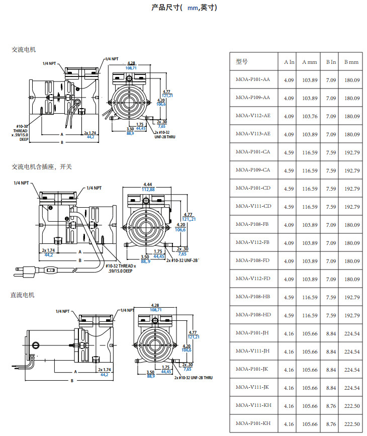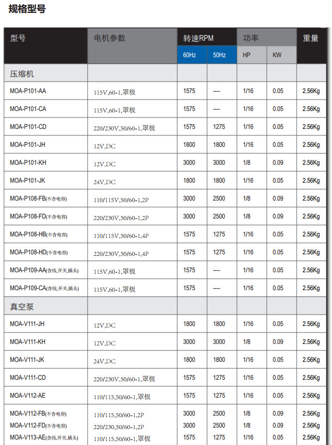MOA-P101-AA,MOA-P108-HD,MOA-P109-AA,MOA-V111-KH,隔膜式真空泵/壓縮機(jī)