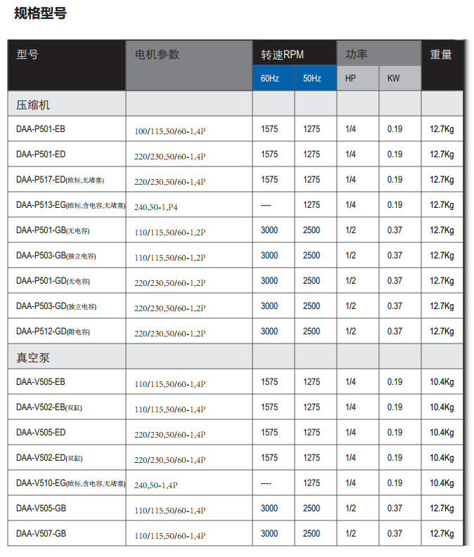 DAA-P501-EB,DAA-P501-ED,DAA-P517-ED,DAA-P513-EG,DAA-P501-GB,隔膜式真空泵/壓縮機(jī)