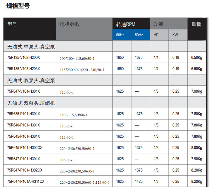 75R135,75R647,75R635,75R640,75R645,75R647,搖擺活塞式真空泵/壓縮機(jī)