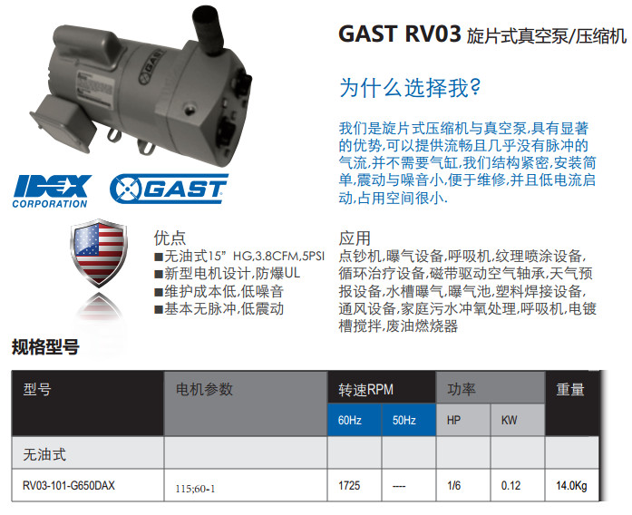 RV03-101-G650DAX,旋片式真空泵/壓縮機
