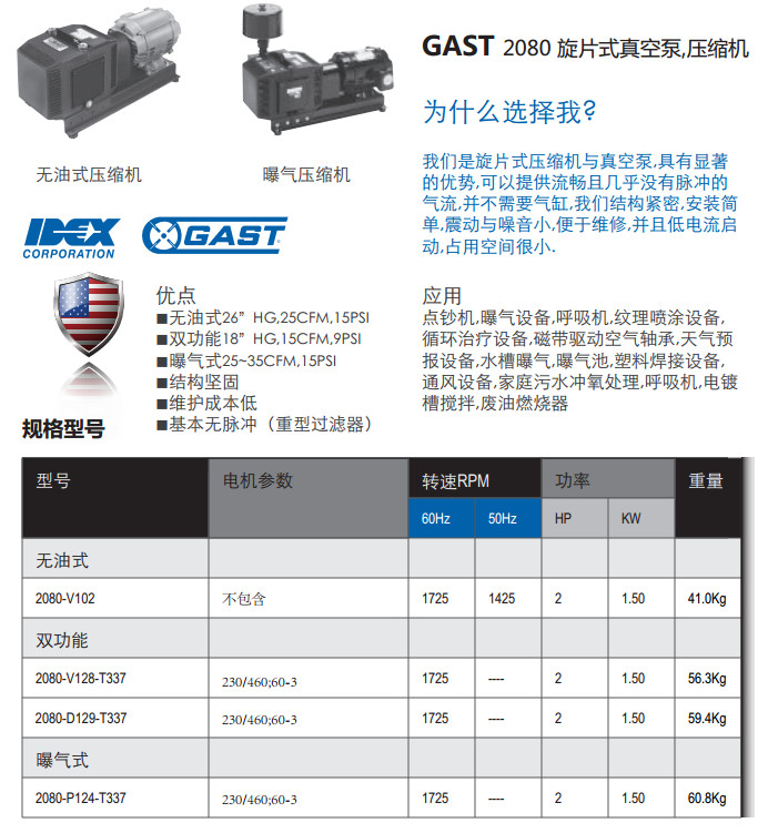 2080-V102,2080-V128-T337,2080-D129-T337,2080-P124-T337,旋片式壓縮機/真空泵 |