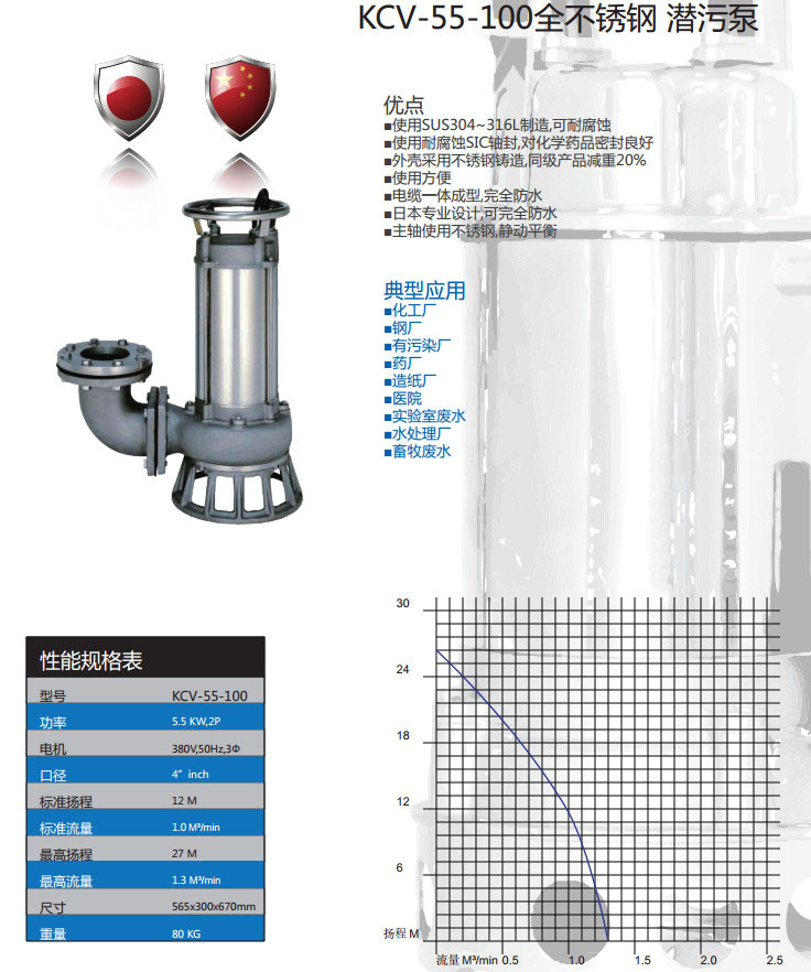KCV-55-100,全不銹鋼潛污泵