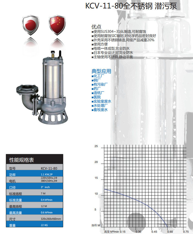 KVC-11-50,全不銹鋼潛污泵