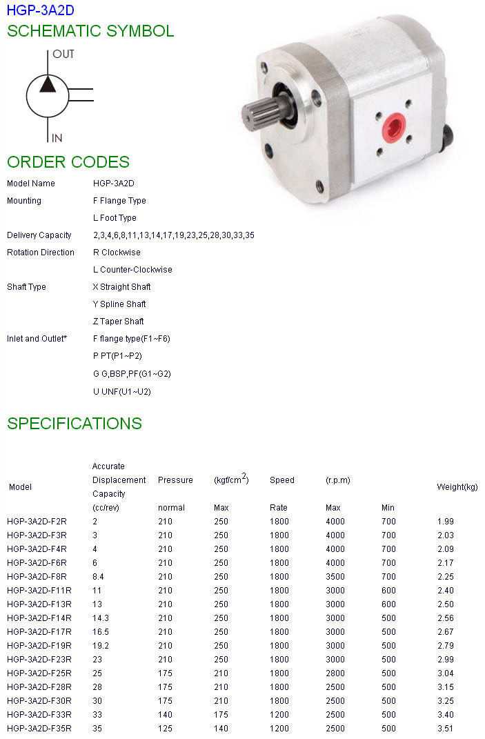HGP-3A2D-F2R,HGP-3A2D-F3R,HGP-3A2D-F4R,HGP-3A2D-F6R,HGP-3A2D-F8R,HYDROMAX齒輪泵