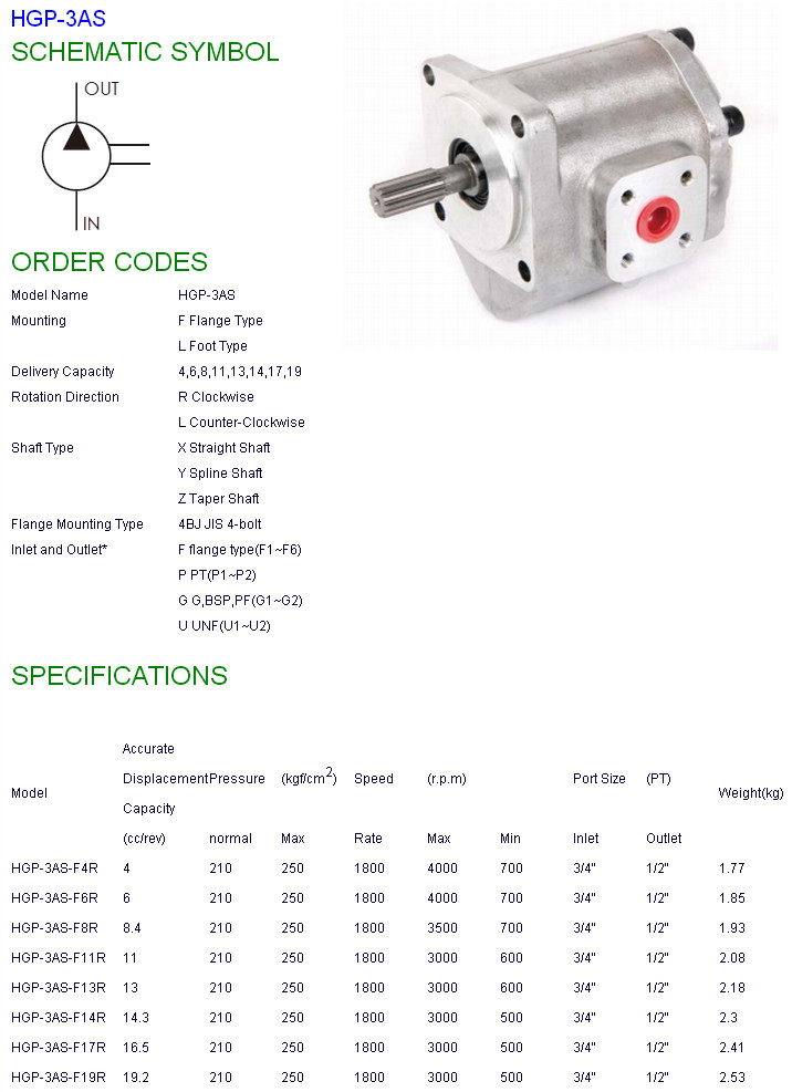 R,HGP-3AS-F6R,HGP-3AS-F8R,HGP-3AS-F11R,HGP-3AS-F13R,HYDROMAX齒輪泵