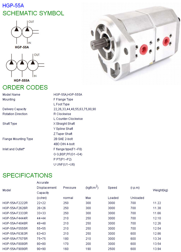 HGP-55A-F2222R,HGP-55A-F2626R,HGP-55A-F3333R,HGP-55A-F4444R,HYDROMAX齒輪泵
