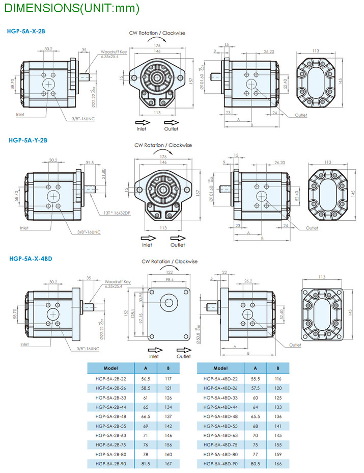 HGP-5A-F22R,HGP-5A-F26R,HGP-5A-F33R,HGP-5A-F44R,HGP-5A-F48R,HYDROMAX齒輪泵