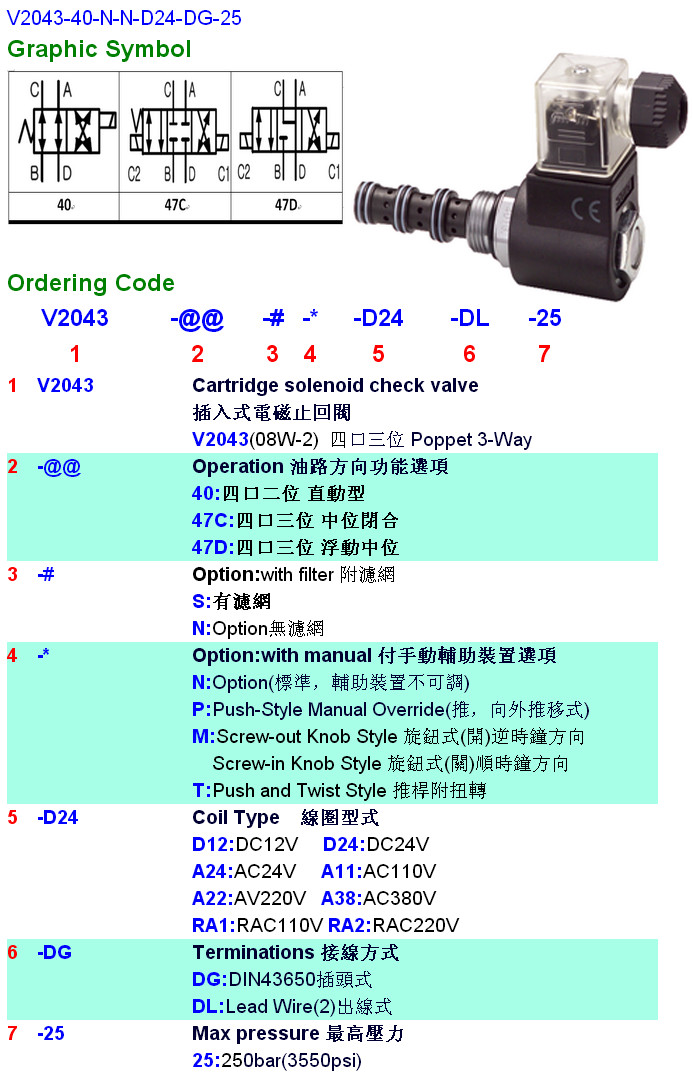 V2043-40,V2043-47C,V2043-47D,V2043-40-N-N-D24-DG-25,HYDROMAX插入式電磁止回閥 |