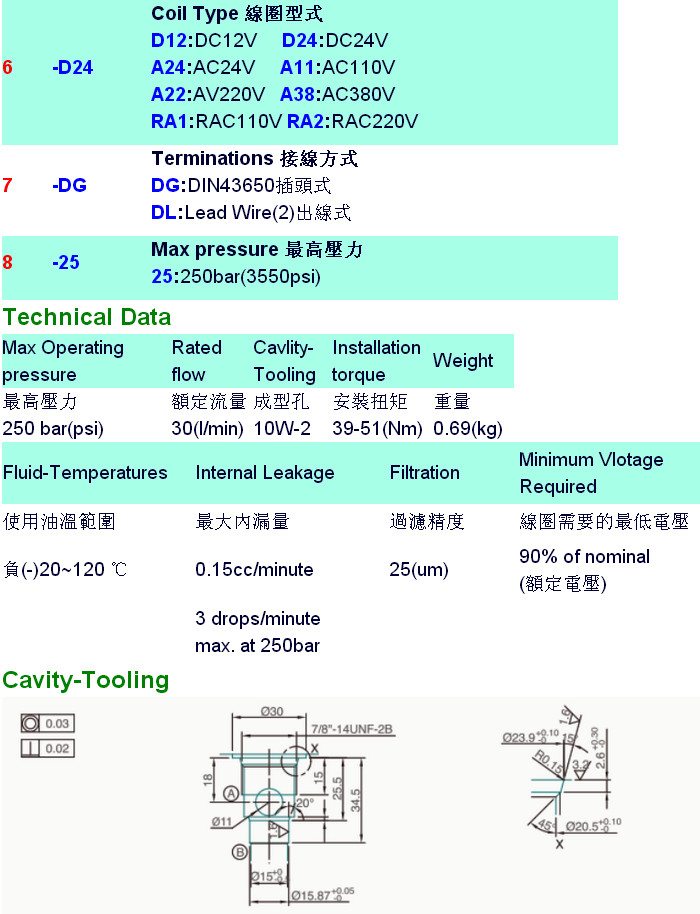 V3068-T03-21,V3068-T04-23,V3068-T04-24,V3068-T03-20-S-N-D24-DG-25,HYDROMAX插入式電磁止回閥