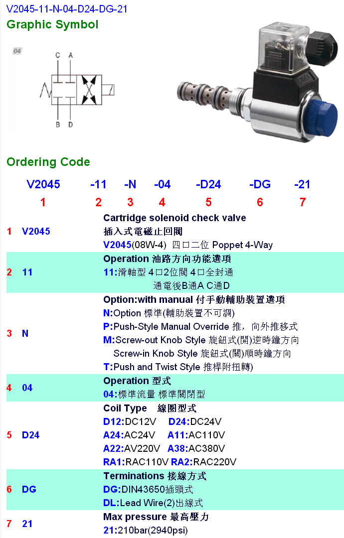 V2045-11-N-04-D24-DG-21,V2045-11-P-04-D24,V2045-11-M-04-D24,V2045-11-T-04-D24,HYDROMAX插入式電磁止回閥
