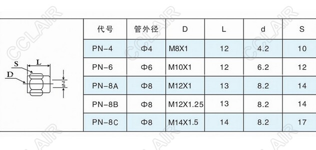 PN-4,PN-6,PN-8A,PN-8B,PN-8C,螺線接頭