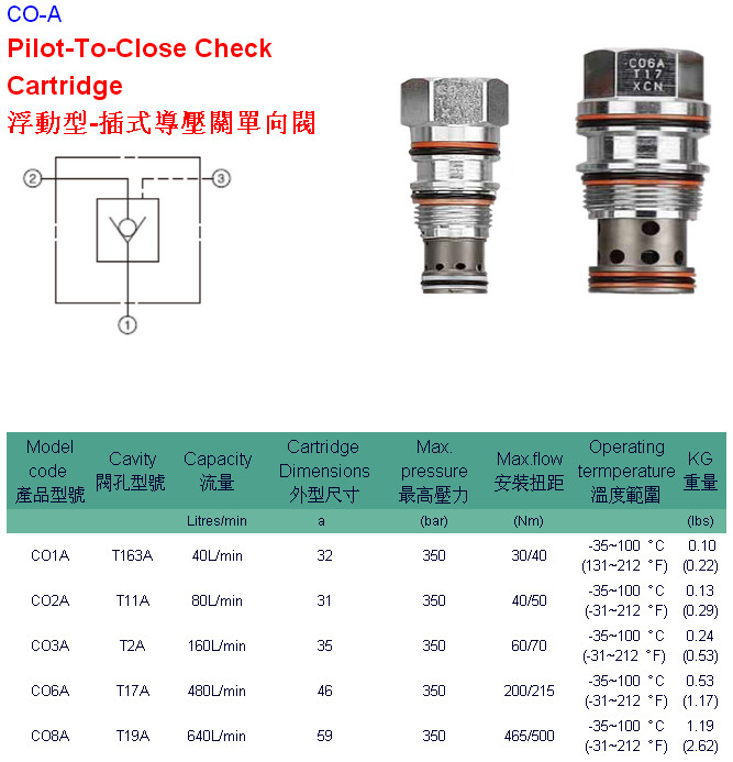 CO1A-T163A-XAN,CO2A-T11A-XCN,CO3A-T2A-XEN,CO6A-T17A-XAV,CO8A-T19A-XCV,CO1A-T163A-XEV,HYDROMAX插式導(dǎo)壓關(guān)單向閥