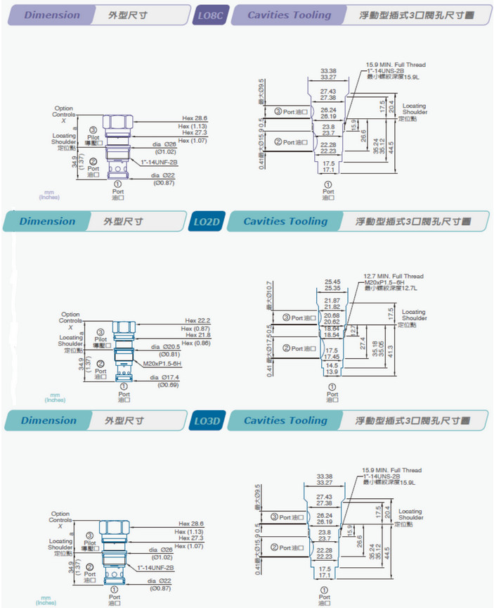 LO2A,LO2B,LO2C,LO3A,LO3B,LO3C,LO3D,LO3O,LO6A,LO6B,LO6C,LO6D,LO6O,LO8A,LO8B,LO8C,HYDROMAX插式常開型邏輯閥 |