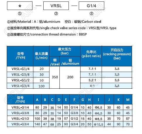 VRSL-G1/4,VRSL-G3/8,VRSL-G1/2,VRSL-G3/4,VRSL,單向液壓鎖