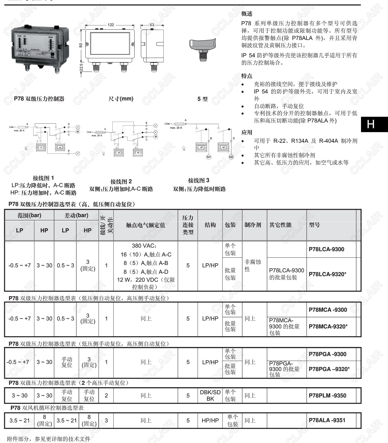 P78LCA-9300,P78LCA-9320,P78MCA-9300,P78MCA-9320,P78PGA-9300,P78,雙級壓力控制器 |