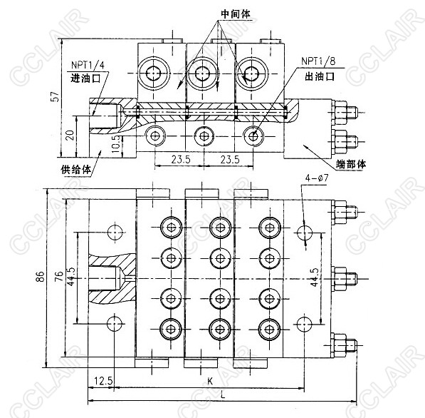 LC:沒有左出口,從進(jìn)油方向看左側(cè)出口與鄰接的后一片出口合并油量。