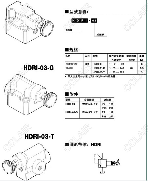 HDRI-03,HDRI-03-G,HDRI-03-T,引導(dǎo)動作型溢流閥yuatsuseiki