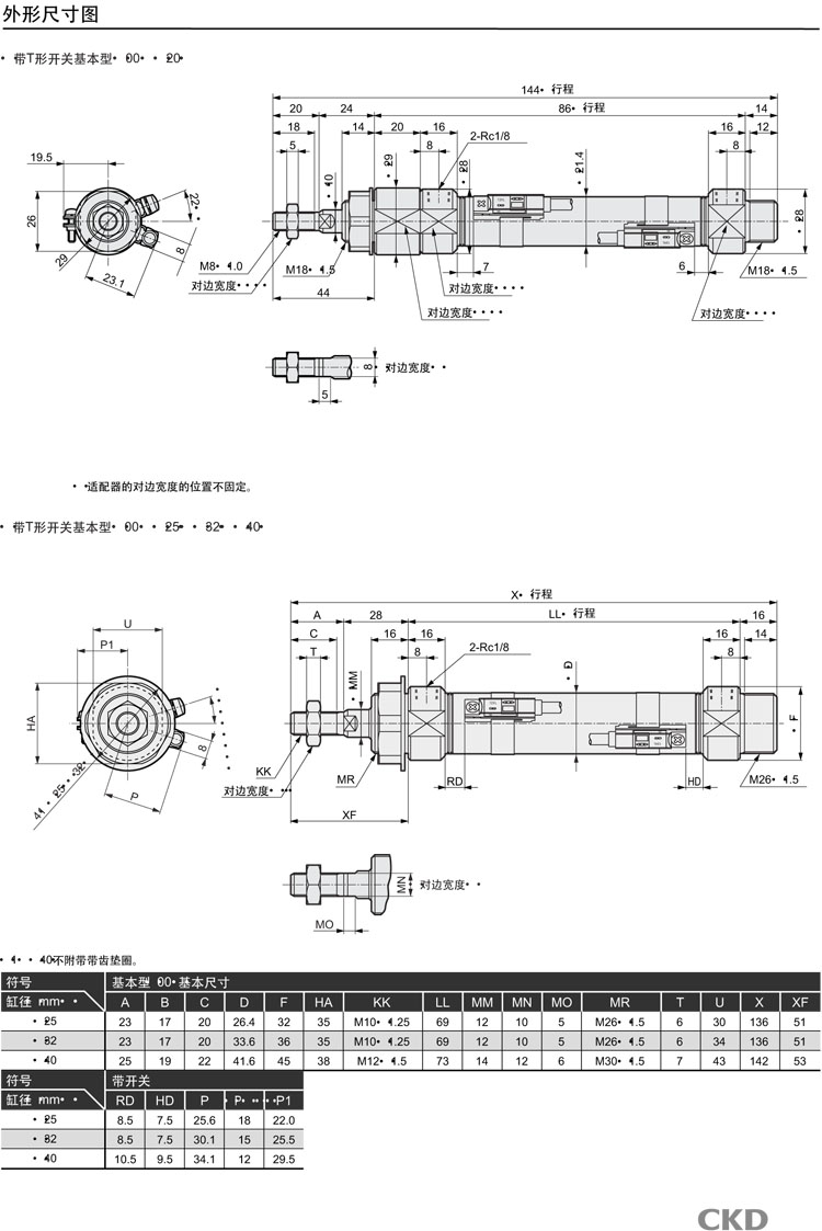 CMK2-G2-00-20-25,CMK2-G2-00-20-50,CMK2-G2-00-20-75,CMK2-G2-00-20-100,CMK2-G2-00-20-150,CKD緊固型氣缸