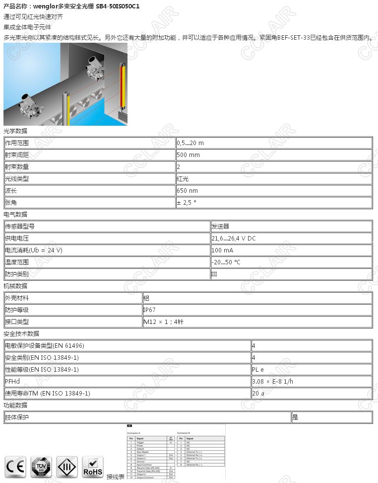 SB4-50IS050C1,wenglor多束安全光柵