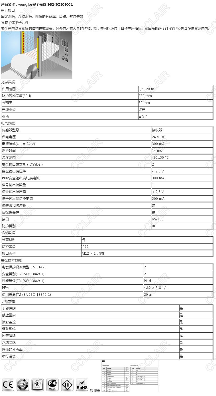 SG2-30IE090C1,wenglor安全光幕