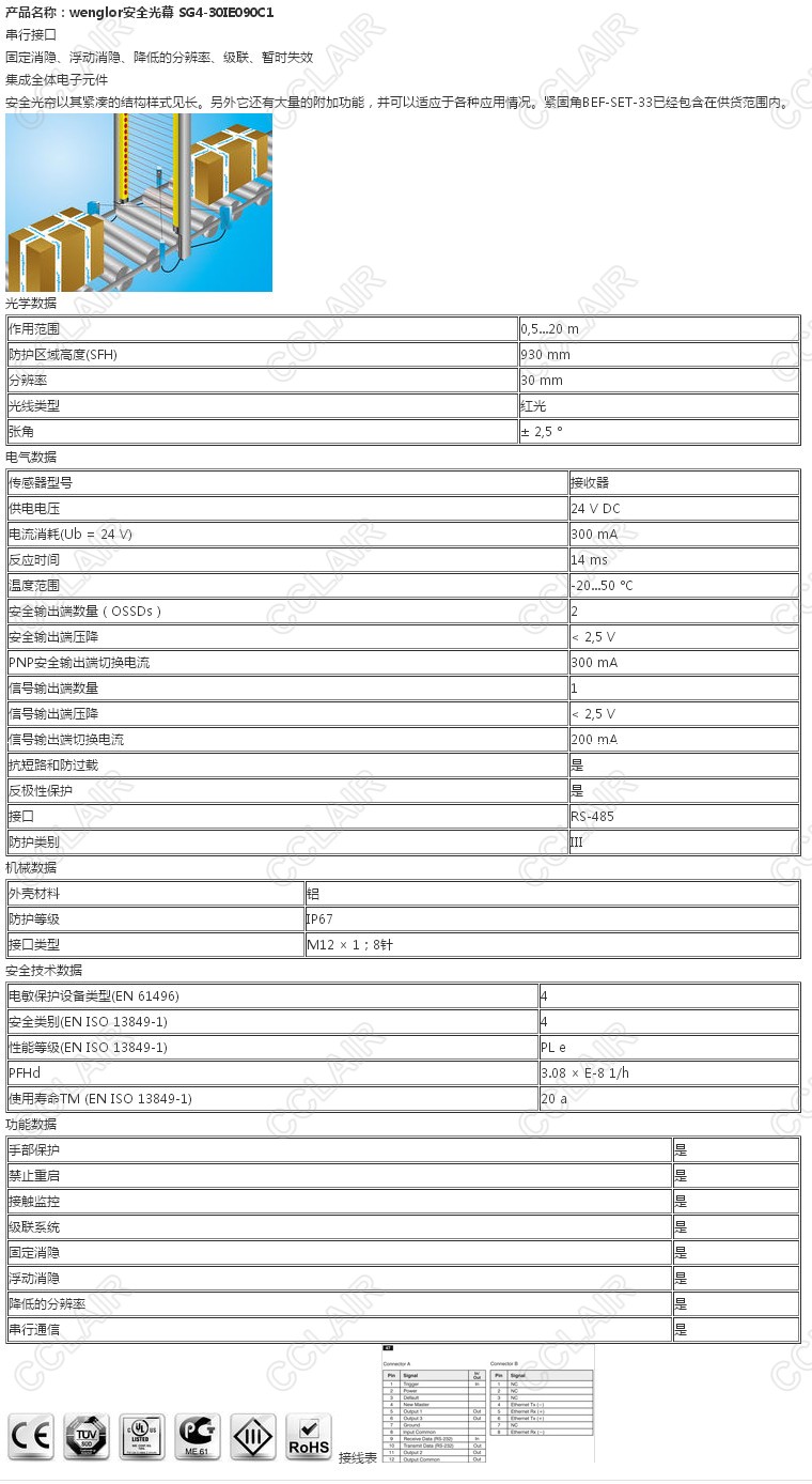 SG4-30IE090C1,wenglor安全光幕