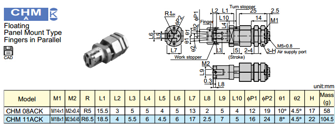 CHM08ACK,CHM11ACK,PISCO截止夾持器