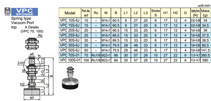 VPC10S-6J,VPC15S-6J,VPC20S-6J,VPC25S-6J,VPC30S-6J,VPC50S-6J,VPC70S-01,VPC100S-01,VPC35S-6J,PISCO真空吸盤 |