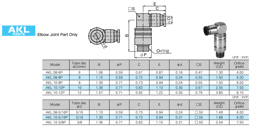 AKL08-6P,AKL08-8P,AKL10-8P,AKL10-10P,AKL10-12P,AKL08-5/16P,AKL10-5/16P,AKL10-3/8P