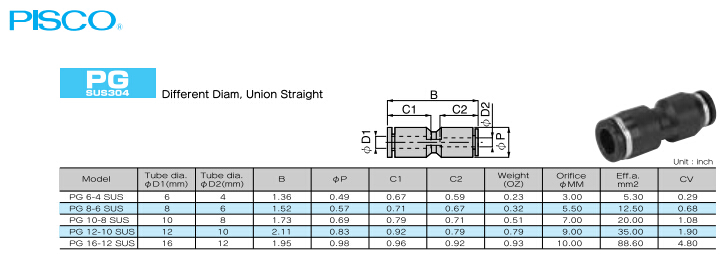 PU4SUS,PU6SUS,PU8SUS,PU10SUS,PU12SUS,PU16SUS,PISCO快速接頭