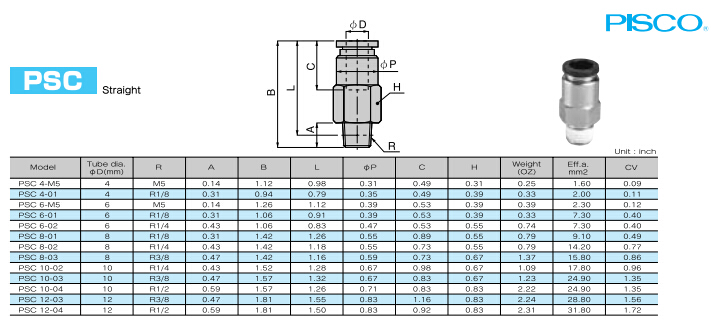 PSC4-M5,PSC4-01,PSC6-M5,PSC8-01,PSC10-02,PSC12-03,PSC10-04,PSC6-02,PISCO快速接頭