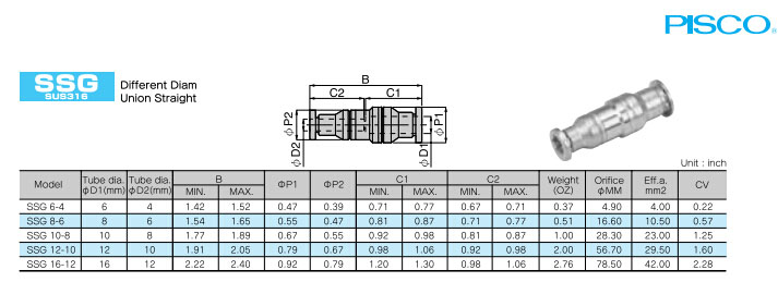 SSG6-4,SSG8-6,SSG10-8,SSG12-10,SSG16-12,PISCO快速接頭