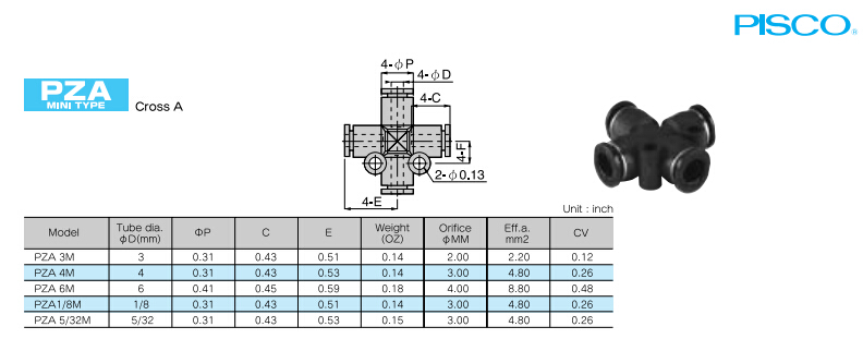 PZA3M,PZA4M,PZA6M,PZA1/8M,PZA5/32M