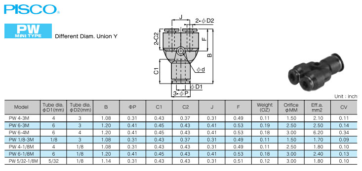 PW4-3M,PW6-3M,PW6-4M,PW1/8-3M,PW4-1/8M,PW6-1/8M,PW5/32-1/8M
