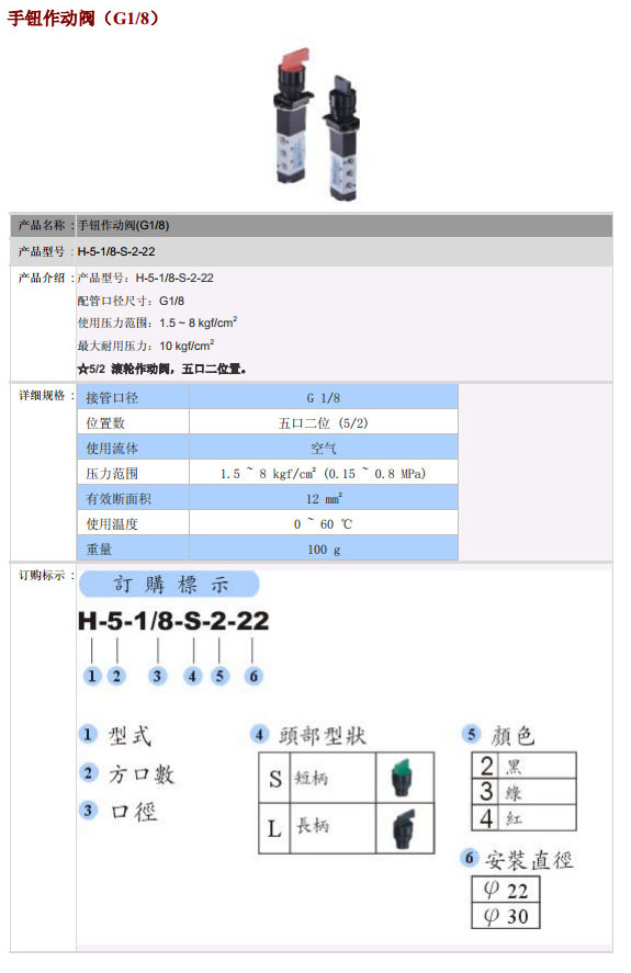 H-5-1/8-S-2-22,POSU手鈕作動閥