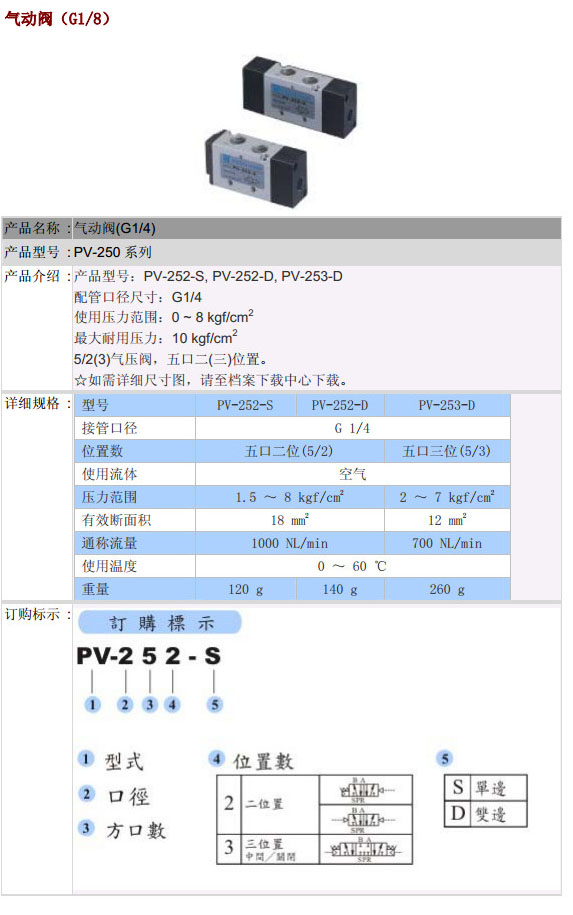 PV-252-S,PV-252-D,PV-253-D,PST氣動閥