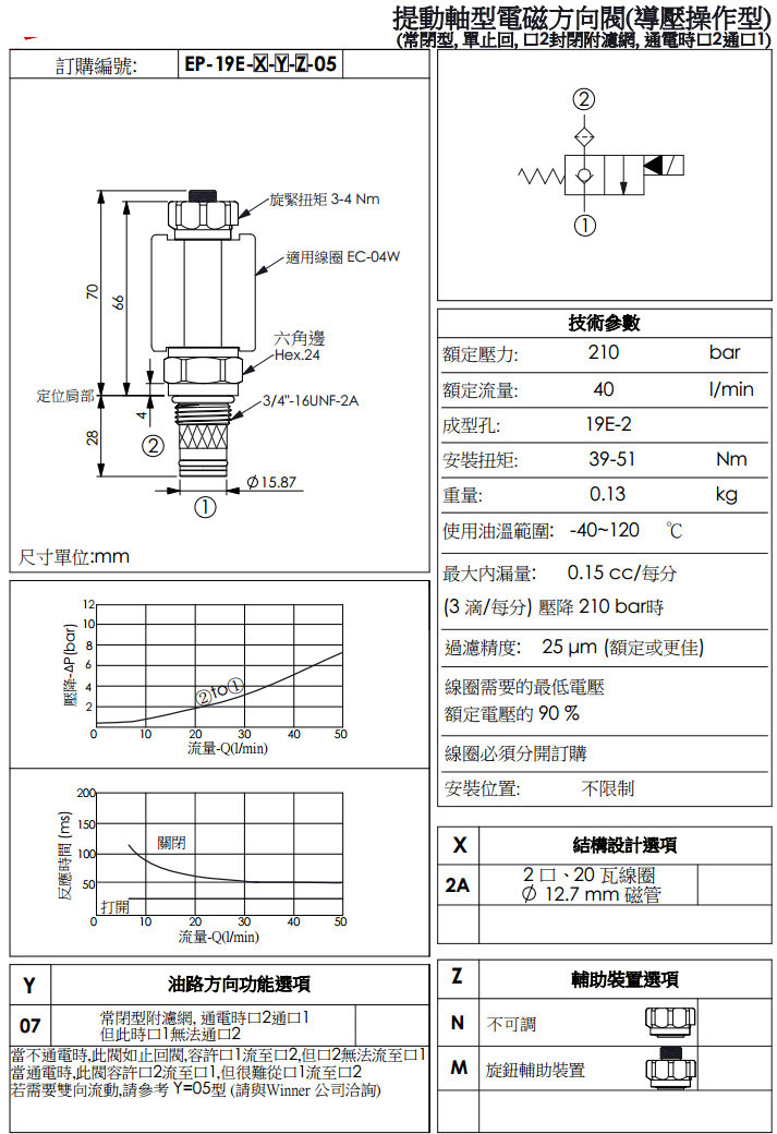 EP-19E-2A-07-N-05,EP-19E-2A-07-M-05,winner提動軸型電磁方向閥
