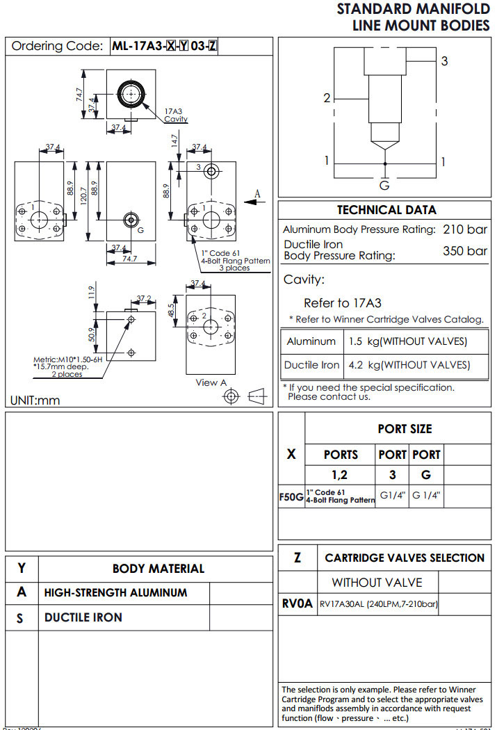 ML-17A3-F50G-A03-RV0A,ML-17A3-F50G-S03-RV0A,winner標(biāo)準(zhǔn)配管式油路板 |