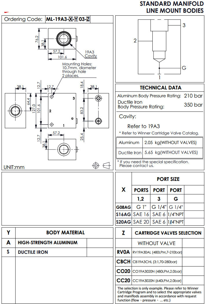 ML-19A3-G08AG-A03-RV0A,ML-19A3-S16AG-A03-RV0A,ML-19A3-S20AG-A03-RV0A,winner標(biāo)準(zhǔn)配管式油路板