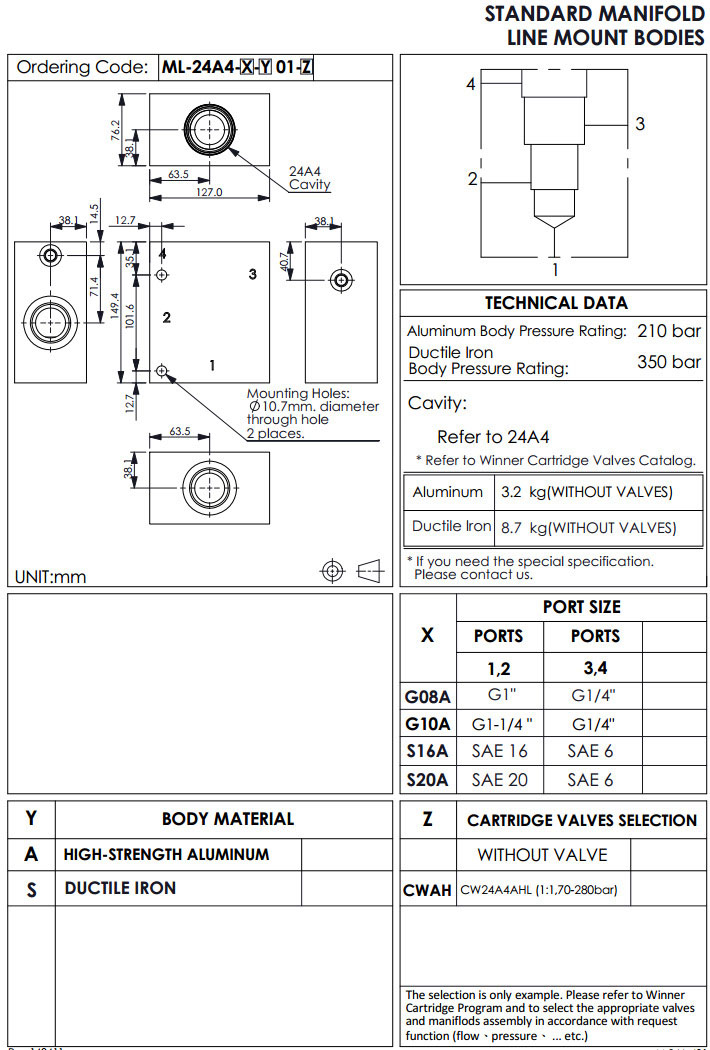 ML-24A4-G08A-A01-CWAH,ML-24A4-G10A-A01-CWAH,ML-24A4-S16A-A01-CWAH,ML-24A4-S20A-A01-CWAH,winner標準配管式油路板