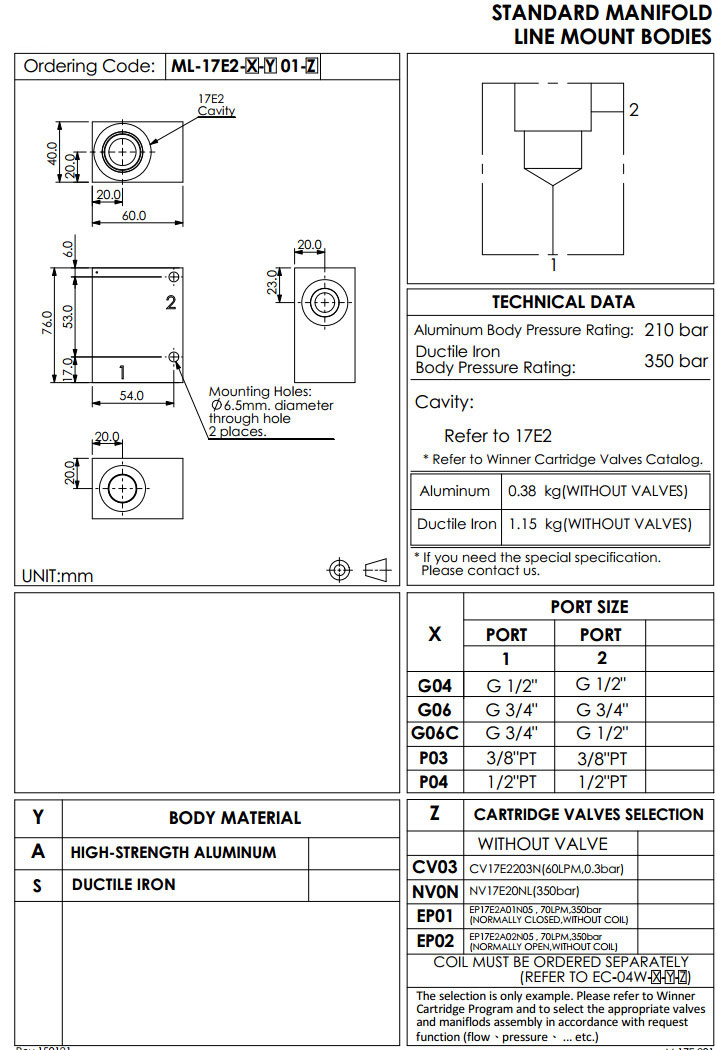 ML-17E2-G04-A01-CV03,ML-17E2-G06-A01-CV03,ML-17E2-G06C-A01-CV03,ML-17E2-P03-A01-CV03,winner標(biāo)準(zhǔn)配管式油路板 |