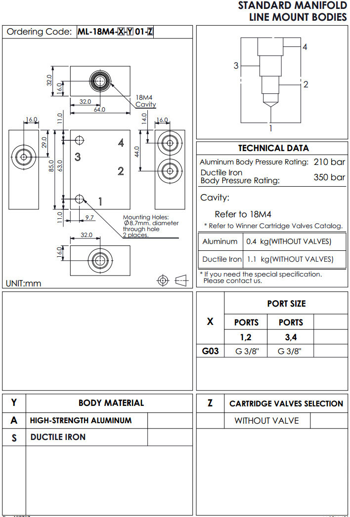 ML-18M4-G03-A01,ML-18M4-G03-S01,winner標準配管式油路板