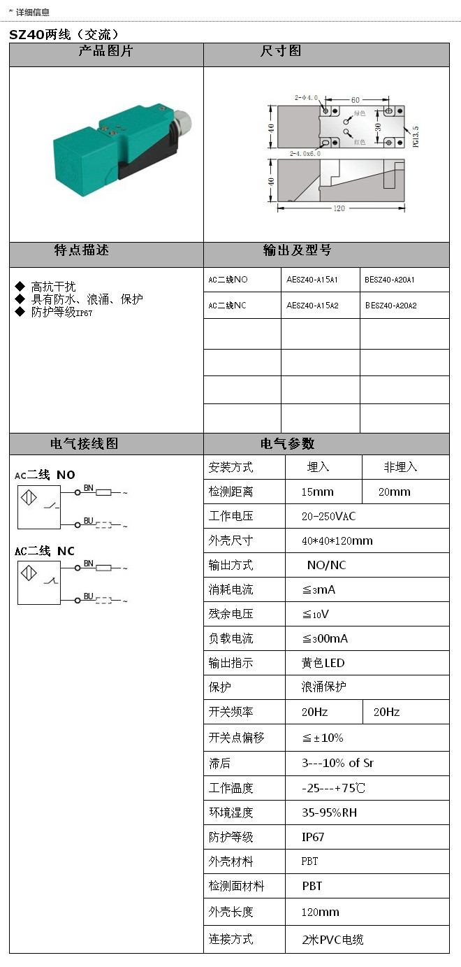 AESZ40-A15A1,BESZ40-A20A1,AESZ40-A15A2,BESZ40-A20A2,SZ40兩線交流