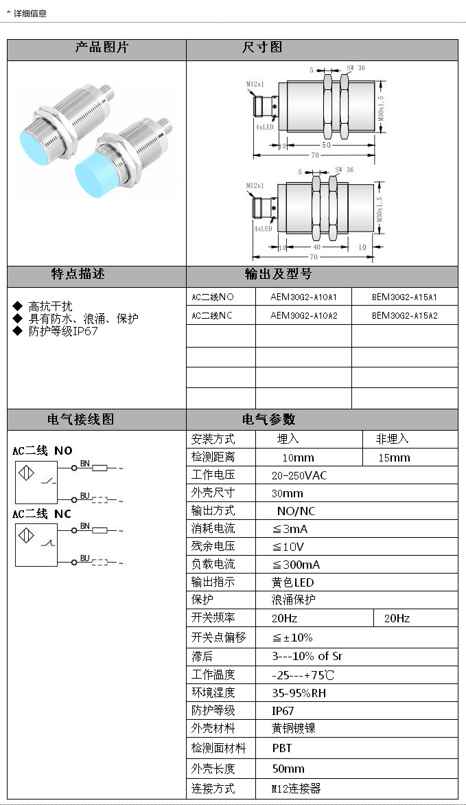 AEM30G2-A10A1,BEM30G2-A15A1,AEM30G2-A10A2,BEM30G2-A15A2,接插式M30交流兩線
